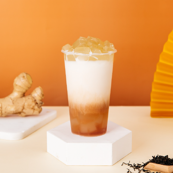 晶花奶基底、晶花锡兰红茶水、佳芝味金黄糖浆、晶花姜汁茶、热水、姜汁、生姜丝