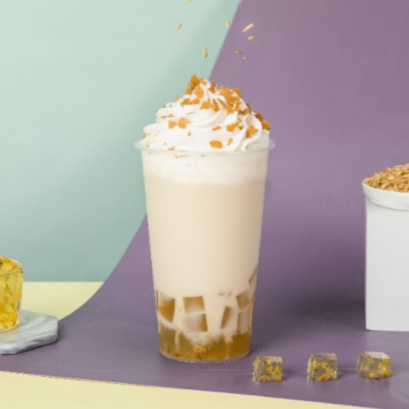 艿大师燕麦艿、晶花抹茶二合一、佳芝味金黄糖浆、热水、珍珠、奶油雪顶